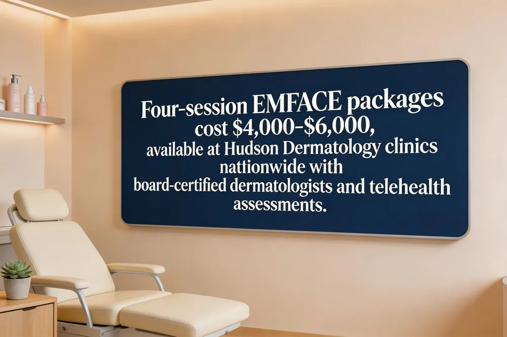 Hudson Dermatology structures its EMFACE offering similarly: patients undergo an initial 20‑minute session followed by three additional treatments spaced 5‑10 days apart. The total cost aligns with the $4,000‑$6,000 benchmark, and a $150 non‑refundable deposit (partially applied) is required at consultation.